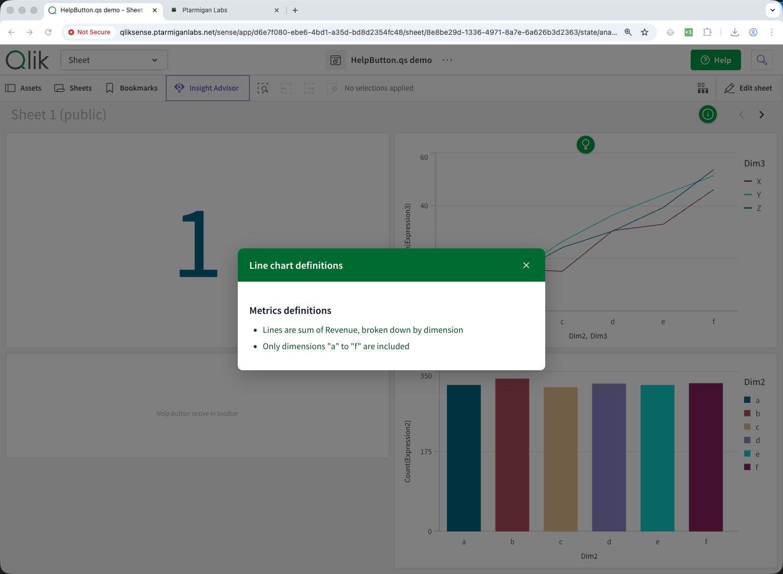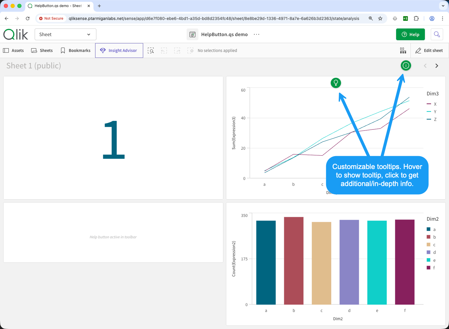 HelpButton.qs 2.1.0 introduces configurable tooltips that can be attached to any Qlik Sense visualization or any element on the page matched by a CSS selector.